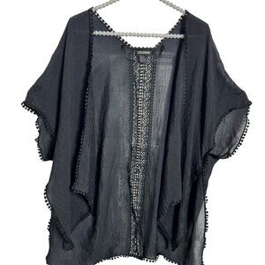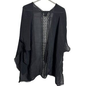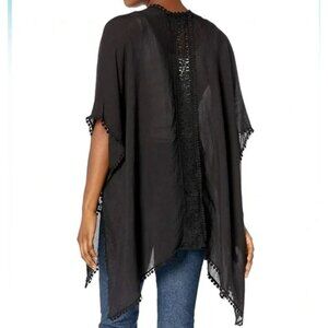 Steve Madden crochet Lace Boho Cover Up Kimono Inset Ruana Black One size