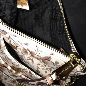 Beautiful floral pleather crossbody purse by Steve Madden. Brown and white in color. 9 inches long by 6 inches tall and 2.5 inches wide.