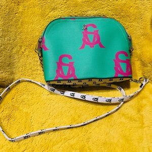 Steve Madden crossbody bag w/ "SM" logo pattern Green/Pink/White/Black designer