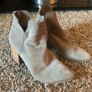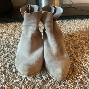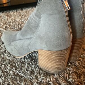 Steve Madden grey suede-leather heeled booties, size 7.5.