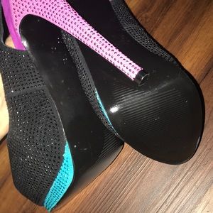Studded color block heels! Leather upper rhinestuds , worn lightly ! Heels are close to 6 inches