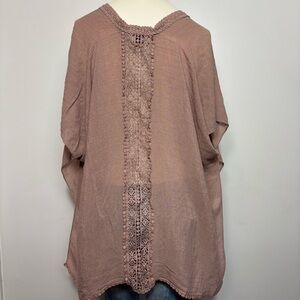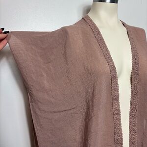 Steve Madden kimono. In perfect condition. Has lace accents at the bottom, down the front and back. Pinkish colors. One size. Has slits down the sides! Super cute and flowy!
