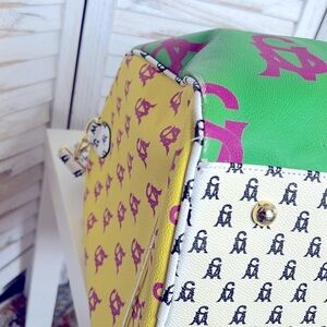 Tags: Steve Madden, travel, tote, carry on, colorblock, pink, green, yellow, barbie, barbiecore, crossbody, oversized, vacation