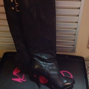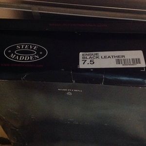 Like new Steve Madden leather boot. Comes with box (box is a little damaged) shoe is excellent condition like new. Beautiful gold hardware at the top of each boot