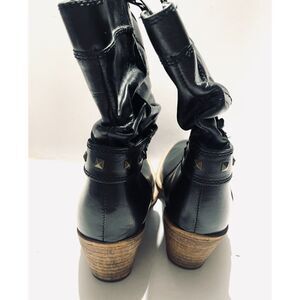 Steve Madden leather boots western rodeo country black strapped embellish women 9L