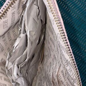 Chic and stylish, this Steve Madden light pink clutch bag is perfect for any occasion. Its sleek design and vibrant color make it a must-have accessory.