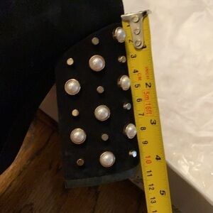 Steve Madden limited ed.Black Sued Yevette Jeweled with pearls heel ankle boots