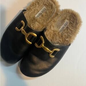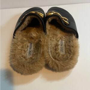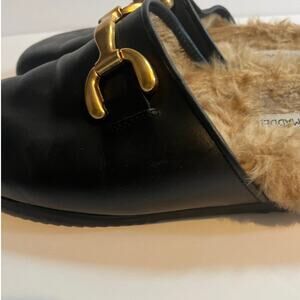 Steve Madden masin mule black leather fur size 7