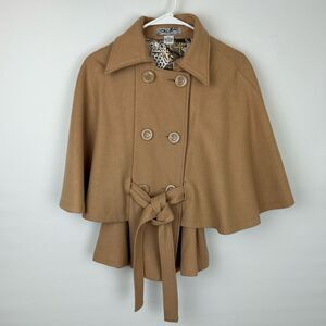 Steve Madden pea coat cape brown camel womens size large quiet luxury short