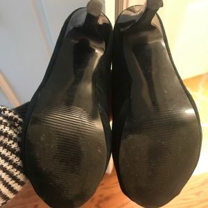 Very gently used heels-- looks like new! Suede material with ruffle detail.