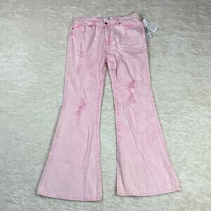 Steve Madden pink high rise distressed flare jeans, size 11