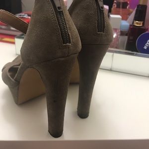 Tan/nude colored platform heels from Steve Madden! Worn a lot and very loved, because they are sexy and comfortable! Gives you the height you always wanted! Size 7.5. Upper back lining is made of leather. ❤️ stain on back of left heel pictured.