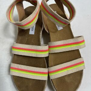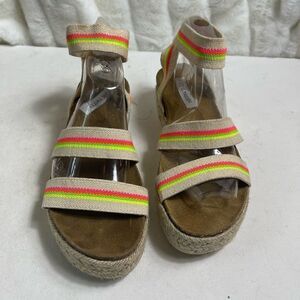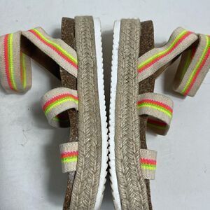 Steve Madden platform espadrilles ankle bright multi color strap sandals SZ9.5 pre owned in good used condition took measurement of the length because size is missing see all pictures any questions please message.E2