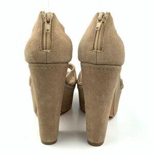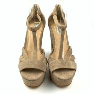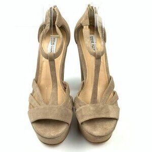 Steve madden womens platforms size 8.5 P-gabbi Tan suede t-strap zip back retro chunky sandals