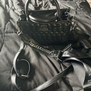 Black Steve Madden crossbody purse with 1 interior pocket and zipper