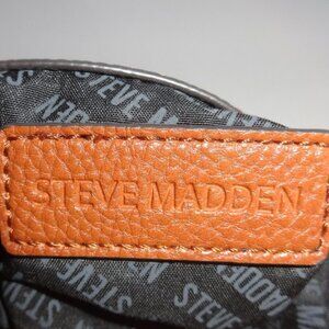 Steve Madden purse, mustard yellow gold tone hardware, adjustable cross body brown straps,