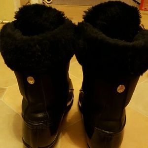 Size 8 like new all black Steve Madden rain boots with fur lining