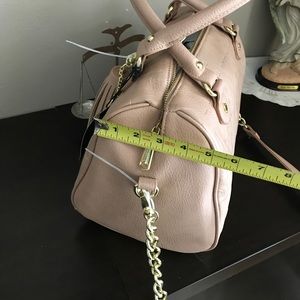 Steve Madden satchel. Logo stamped in front side and back. Comes with fringe key chain.