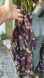 It’s pretty cover-up is a she black floral with wildflowers sprinkled on it and purple peach white green lovely. It has a ruffle down the side. One size fits most new tags.