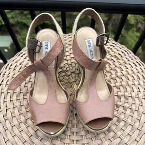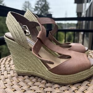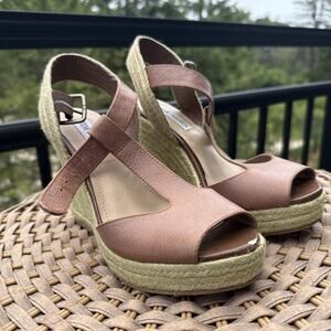 Steve Madden shoes T-strap wedge espadrilles Women’s 6.5 Leather Tan Heels