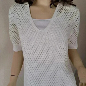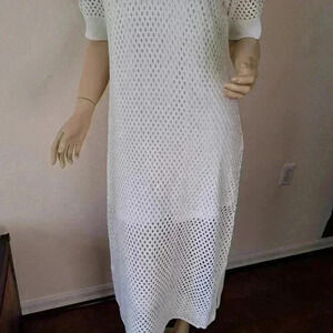 Beautiful white/ivory open knit dress, side slit, under white straps dress, then open knit on top it's awesome fit! New with tag