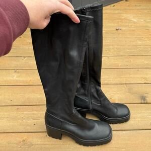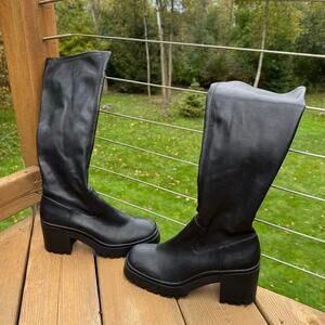 Steve Madden size 7.5 LALO Black Vegan Leather Tall Platform Lug Heel Boots