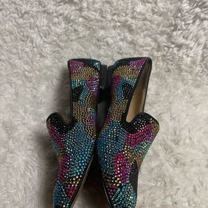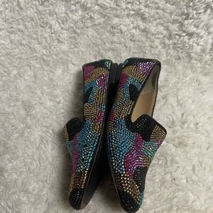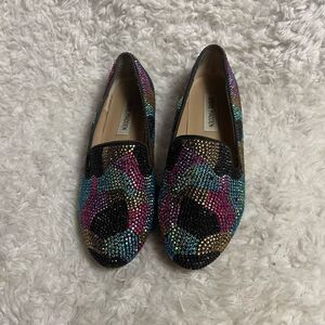 Steve Madden synthetic Multi color Rhinestones loafers leather soles SZ7