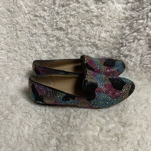 Steve Madden synthetic Multi color Rhinestones loafers leather soles SZ7