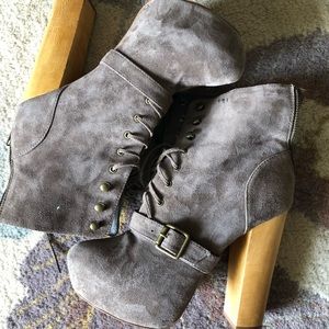 Such amazing shoes! Used but still in good condition, flaws are shown in pictures. Heel doesn’t feel that high because of the platform. Don’t pass these up!