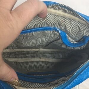 Inside lined in Steve Madden chevron fabric and has 1 zipper pocket and 2 slip pockets