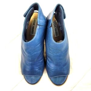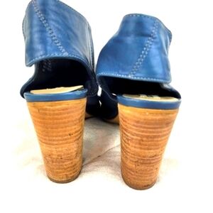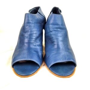 Steve Madden vintage denim blue leather mule peep toe sling back block heel 8
