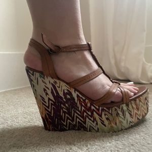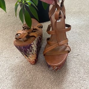 Multi-color Steve Madden wedges size 8. Worn a couple of times but no damage. Straps are brown leather.