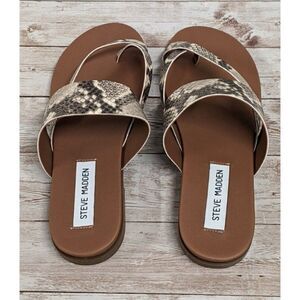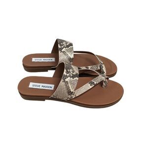 Steve Madden Athens ATHN01S1 Womens Sz 7.5 M Beige Snake Print Flat Strappy Sandal