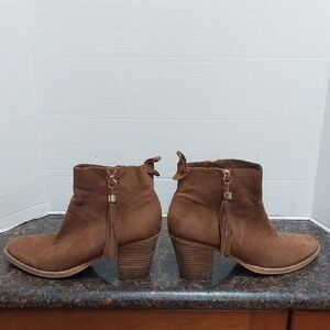 These Steve Madden "BETI" brown heeled boots offer a sophisticated touch with their classic design and high-quality construction. Featuring a warm brown hue, they are crafted for both style and comfort, making them a versatile choice for any occasion. The 3" heel adds a subtle lift perfect for pairing with various outfits. The suede is soft and supple. You will love the tassel detail for sure, and these heels will get noticed and complimented time and time again.