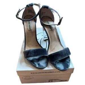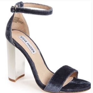 Steve Madden Carrsonv Blue Gray Velvet Ankle Strap Mirror Heels