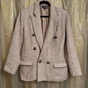 Steve Madden Darcie Tweed Herringbone Cream Brown Blazer Jacket Small Used