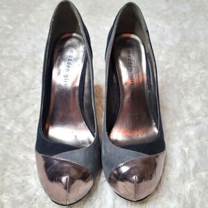 Steve Madden Flirrt Platform Black Grey & Metallic Colorblock Pumps Heels