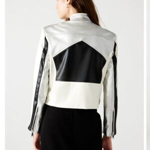 Steve Madden Helayna Faux Leather Silver/cream/black Moto jacket size small