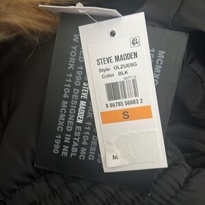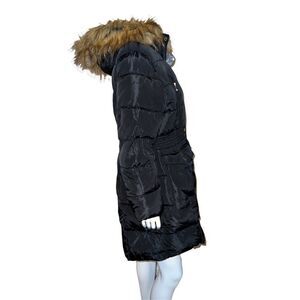 Steve Madden Juniors Faux-Fur-Trim Hooded Black Puffer Coat Small NWT