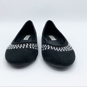 A super comfortable dressy shoe for parties and holidays, this JHalo microfiber flat with crystals and studs by Steve Madden will be your child’s go to shoe. Easy slip on styling for comfort and ease. Very lightly worn. A small scuff at heel as shown. Please see photos for additional details. 1/8" platform, 1/4" heel.