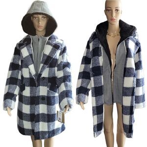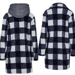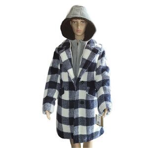 Steve Madden Navy & White Buffalo Plaid Convertible Hooded Teddy Coat
