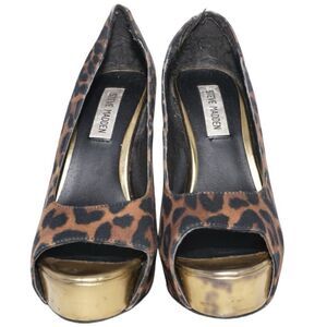 Steve Madden Peep Toe Leopard Print Pumps with Stiletto Heel, Size 7.5