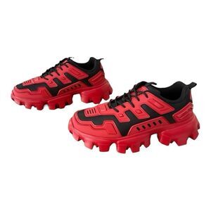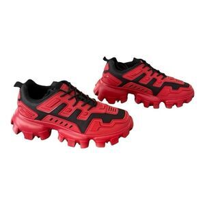 Step up your style with these bold red women's chunky sole sneakers. Perfect for any casual outing.