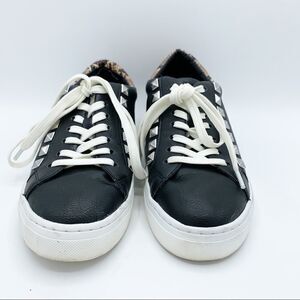 Steve Madden Sienna Black Lace Up Sneakers with Snakeskin and Stud Detailing