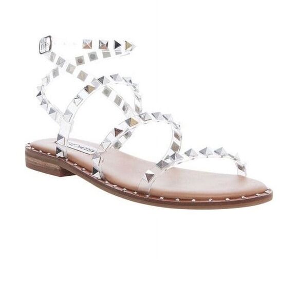 Size 8. Great condition. Clear with silver studs. Match with everything. Perfect sandals. STEVE MADDEN