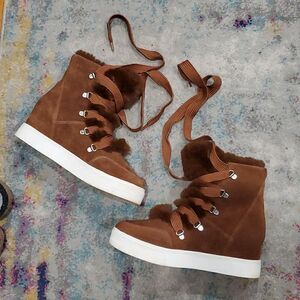 Steve Madden Wharton Suede Wedge Fur Boots Size 9