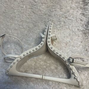 Steve Madden synthetic White patent Ankle Strap heels Rhinestones accents SZ8.5M