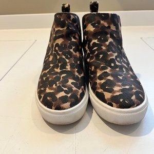 Black/Brown Leapord Print wedge sneakers. Pull on style with a slight wedge. Size 8. Great condition, worn twice.