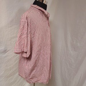 Brand & Description: Steve and Barrys Mens XXXL Red Stripe Plaid Short Sleeve Button Up Shirt