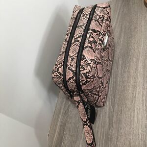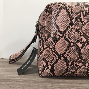 Steve madden pink snake print large double zip cosmetic bag NWT